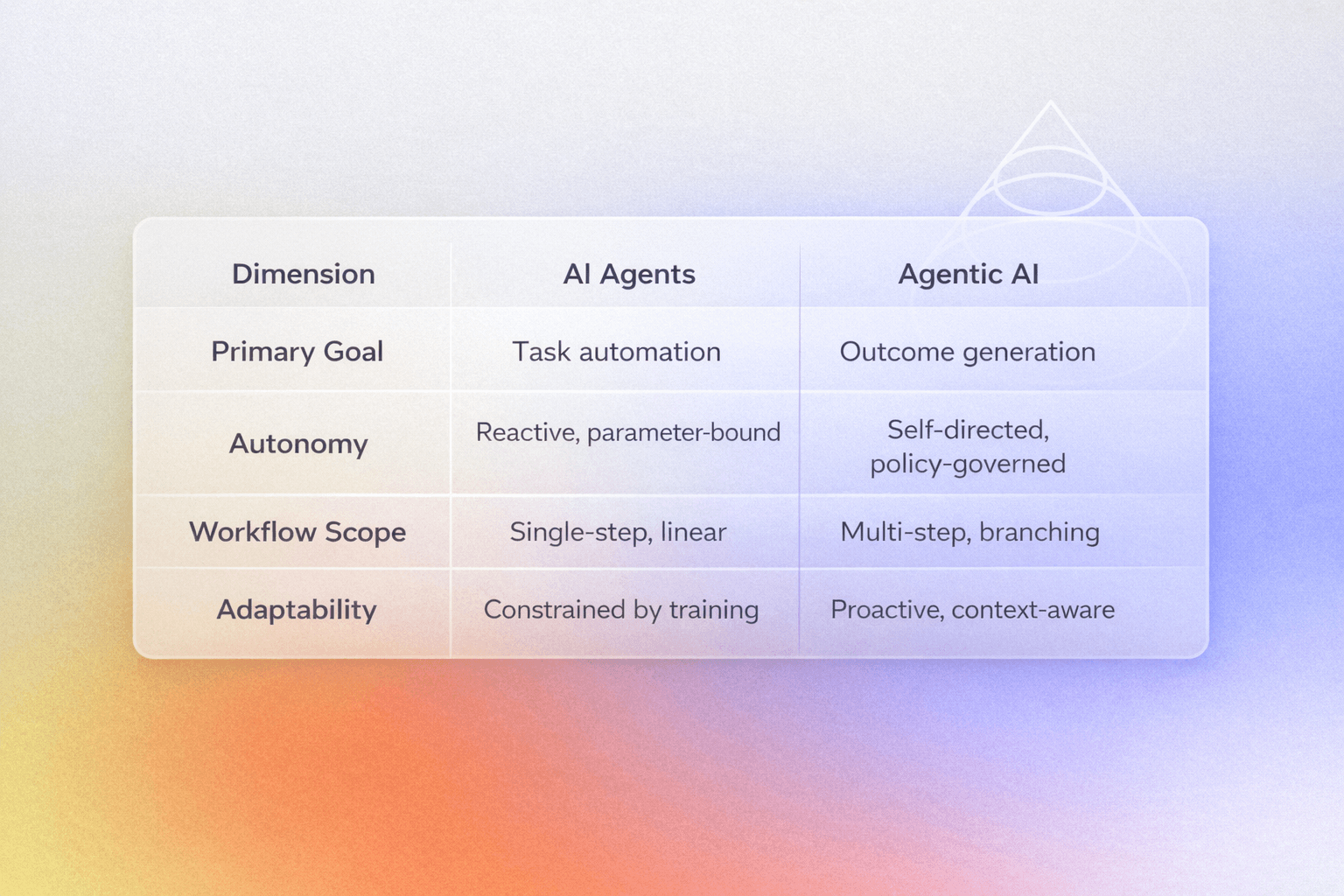 Governance requirements also differ substantially. Agents need task-level guardrails specifying what not to say and when to escalate. Agentic systems need outcome-level governance with policy frameworks defining what the system decides versus what requires approval, covering refund limits, escalation triggers, and compliance requirements.